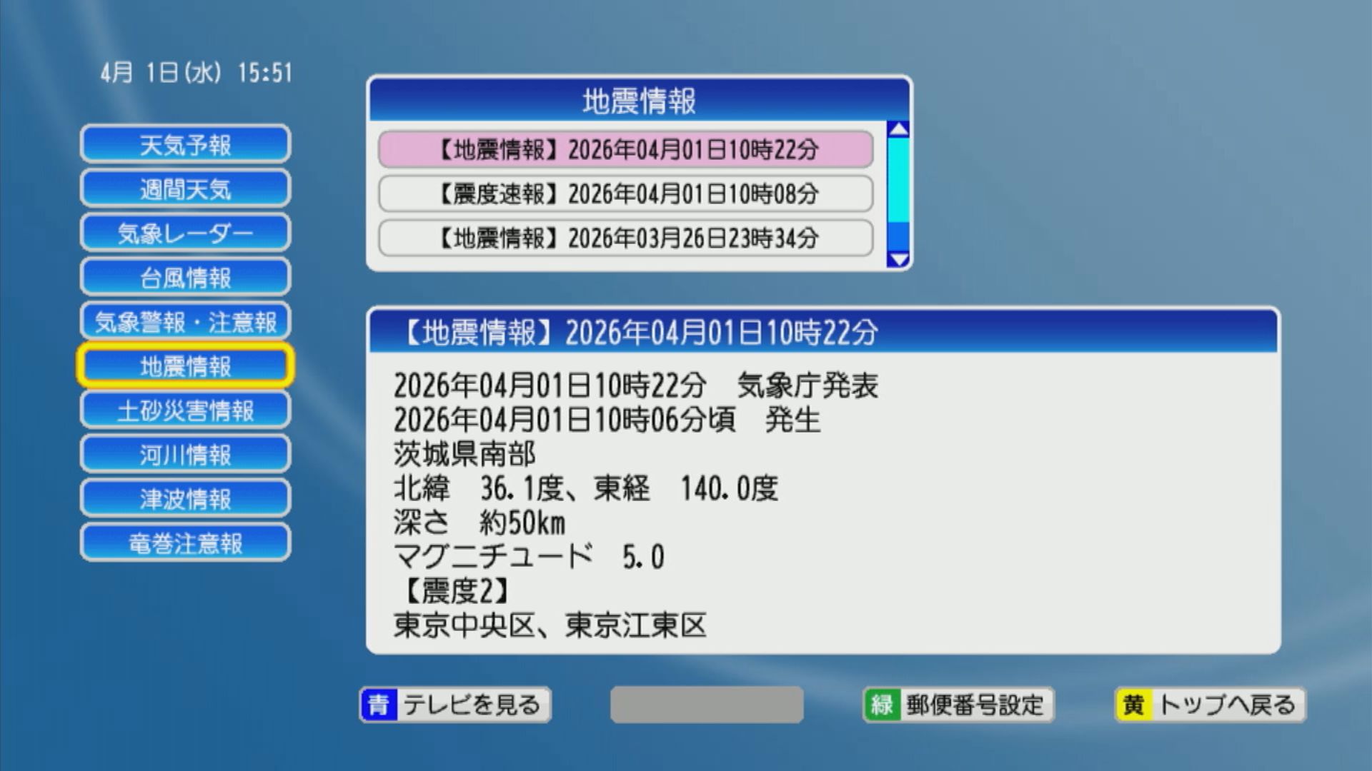 - 地震情報