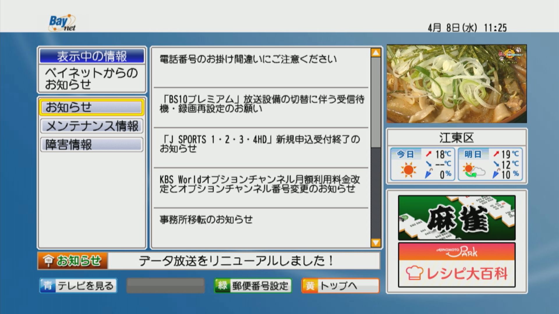 Channel Bayのデータ放送をリニューアルしました!