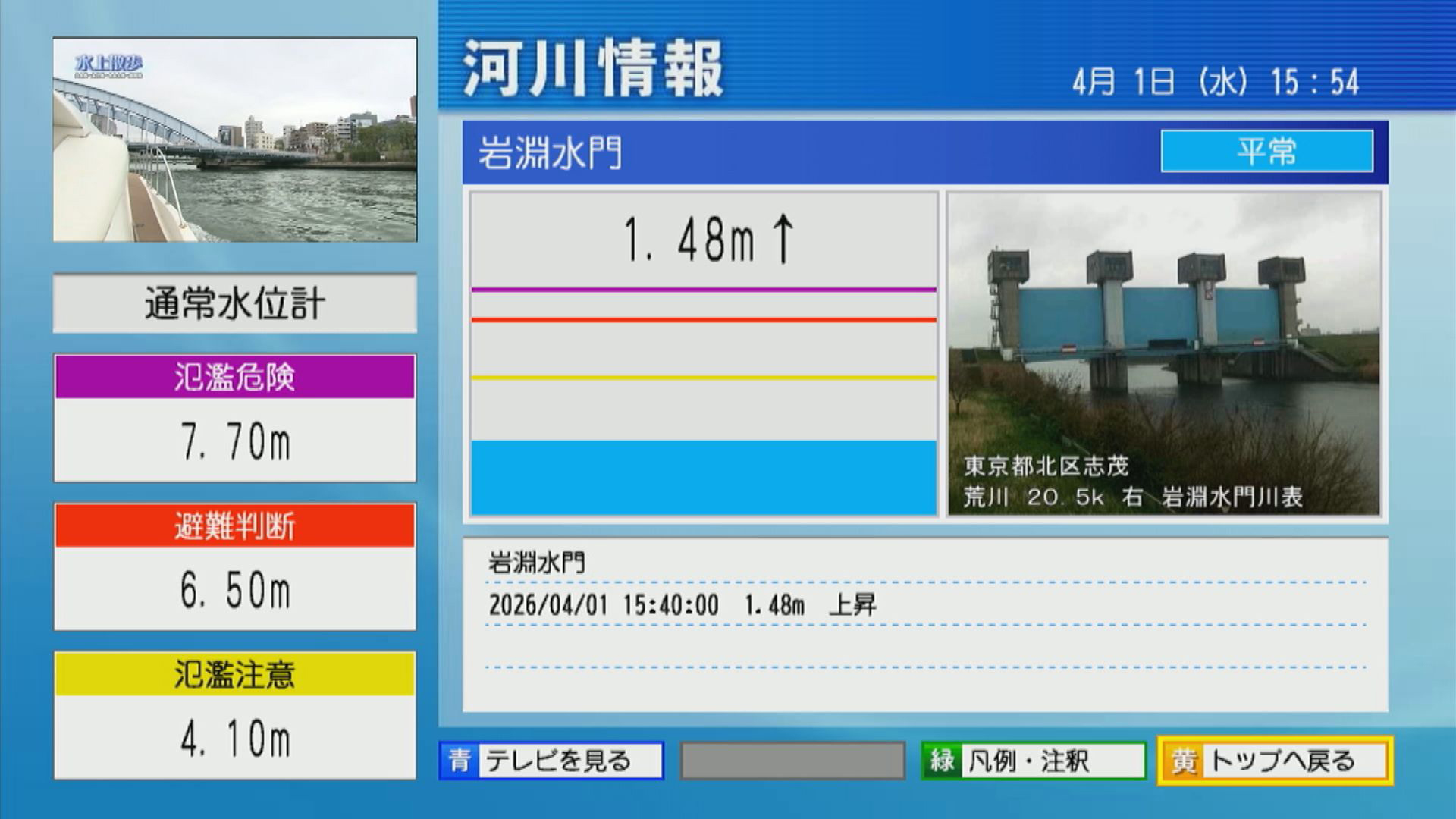 - 河川水位情報(岩淵水門水位)